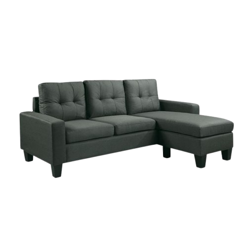 Ανανεώστε τον χώρο σας με αυτόν τον κομψό και λειτουργικό γωνιακό καναπέ. Με μοντέρνο σχεδιασμό σε σκούρο γκρι ύφασμα και καπιτονέ πλάτες, ταιριάζει ιδανικά σε κάθε σαλόνι. Τα αναπαυτικά μαξιλάρια προσφέρουν στήριξη και άνεση, ενώ το ανάκλιντρο σας επιτρέπει να χαλαρώνετε και να απολαμβάνετε στιγμές ξεκούρασης. Οι ίσιοι μπράτσοι και τα στιβαρά ξύλινα πόδια ολοκληρώνουν την κομψή του εμφάνιση.